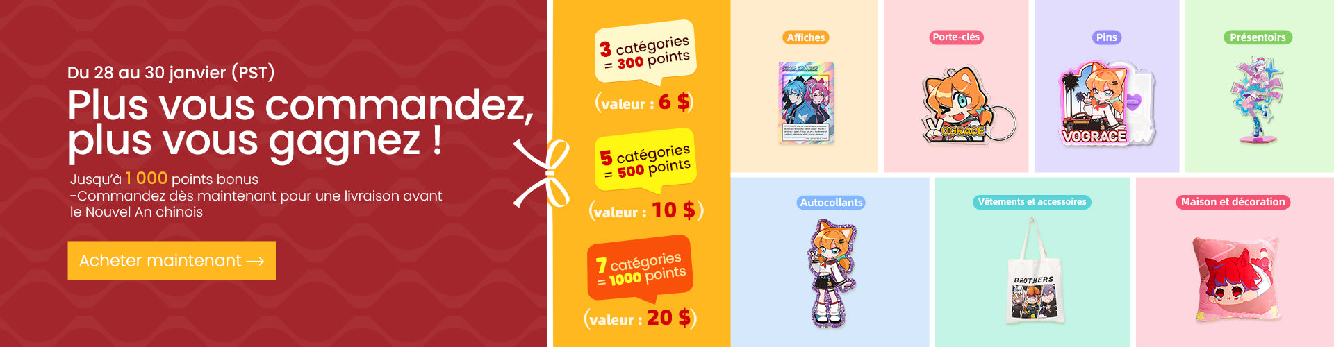 Gagnez des points à chaque achat : plus vous achetez, plus vous économisez et gagnez.